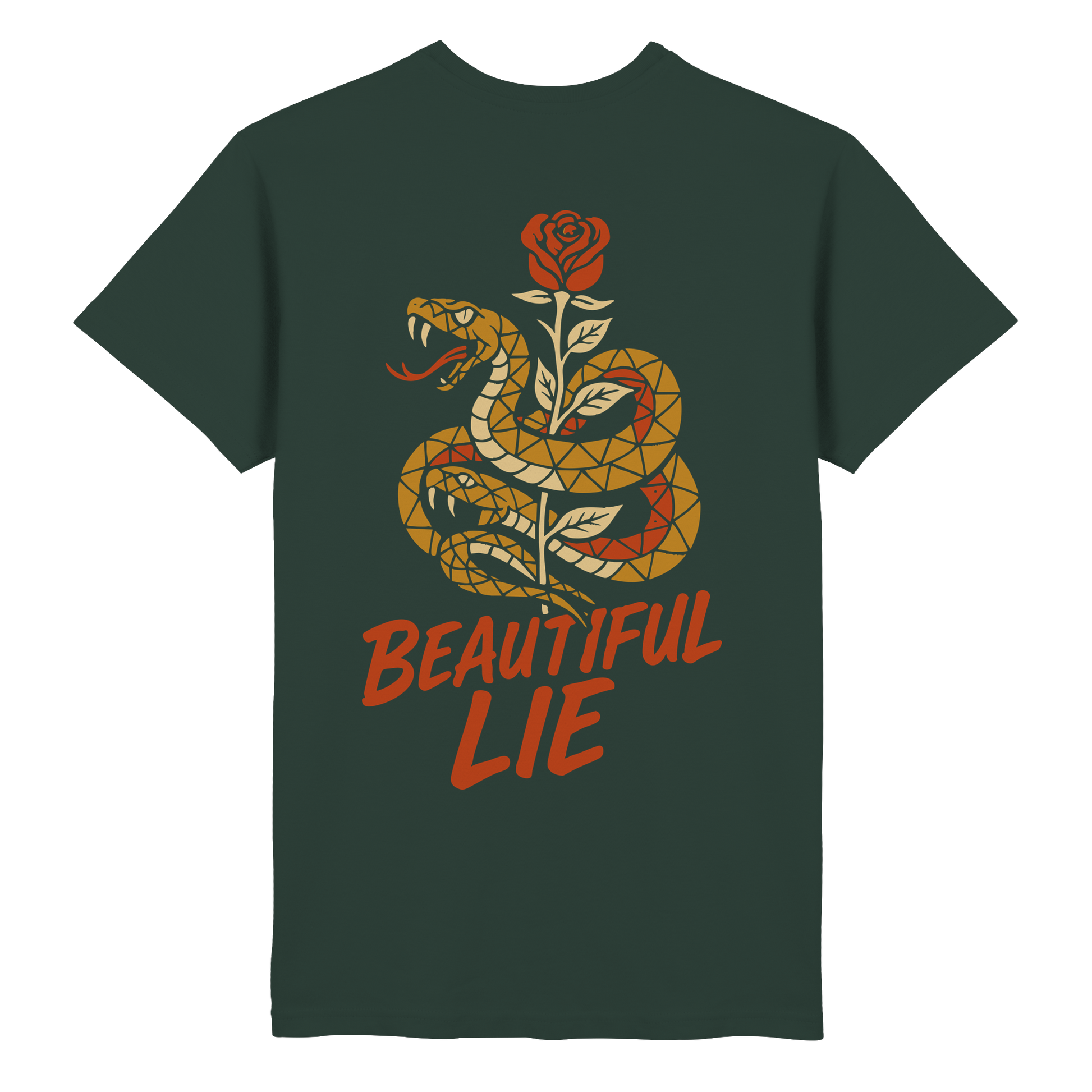 Beautiful Lie – Schlange & Rose | Tattoo-Style Design - Heavy Cotton T-Shirt