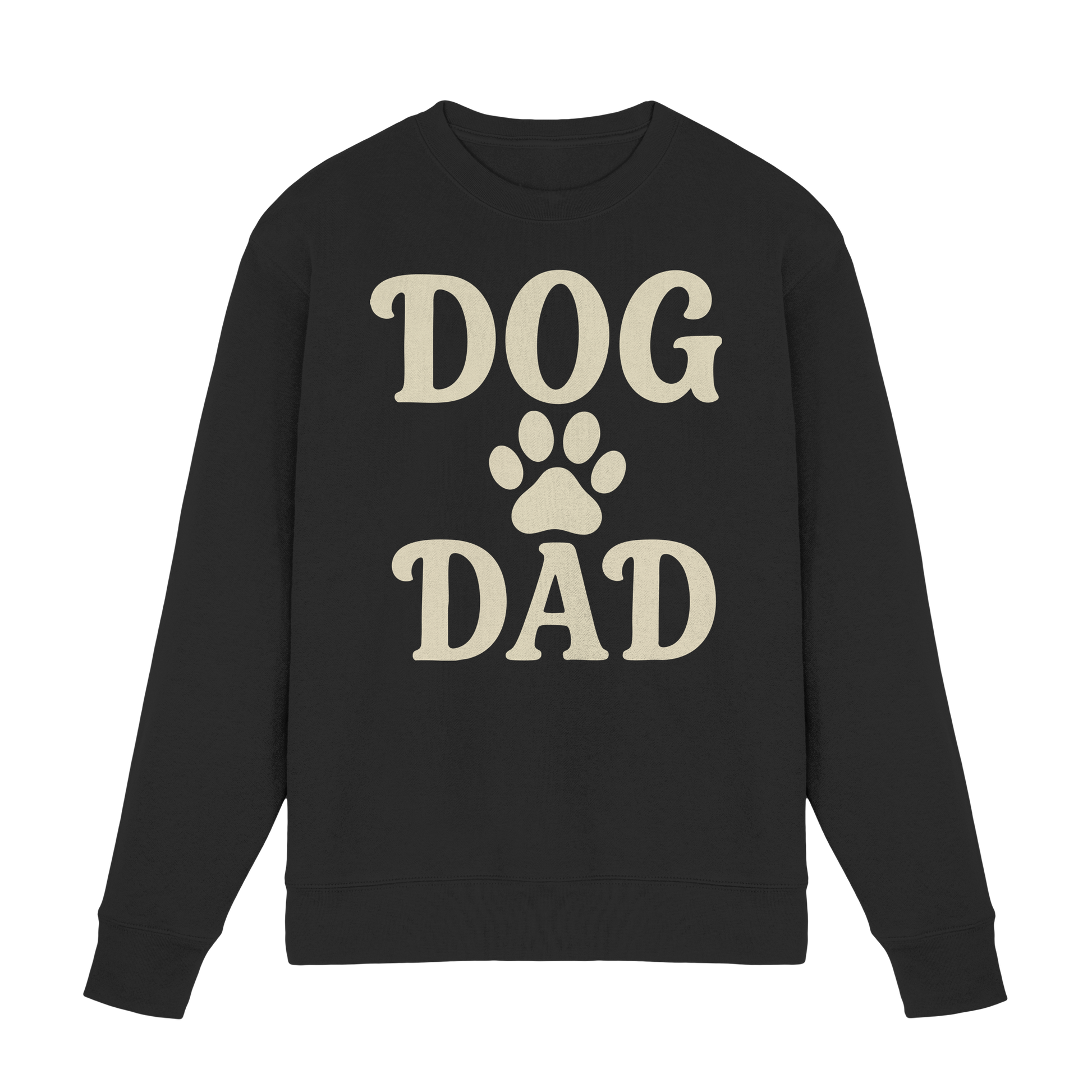Der Schriftzug "Dog Dad" wird von einem liebenswerten Pfotenabdruck ergänzt. Die warme, neutrale Farbgebung strahlt Geborgenheit und Verbindung aus, perfekt für gemütliche Tage mit deinem Vierbeiner.