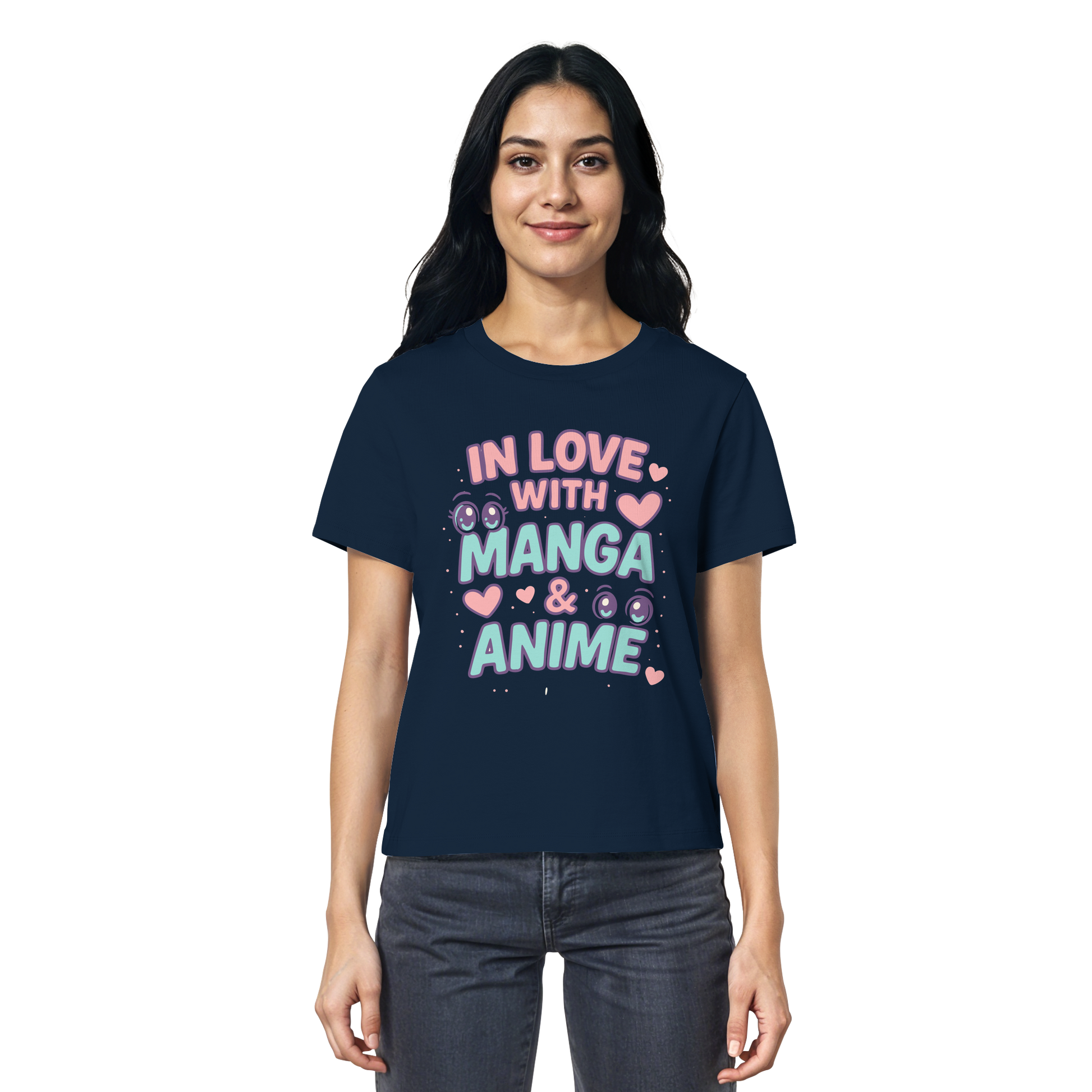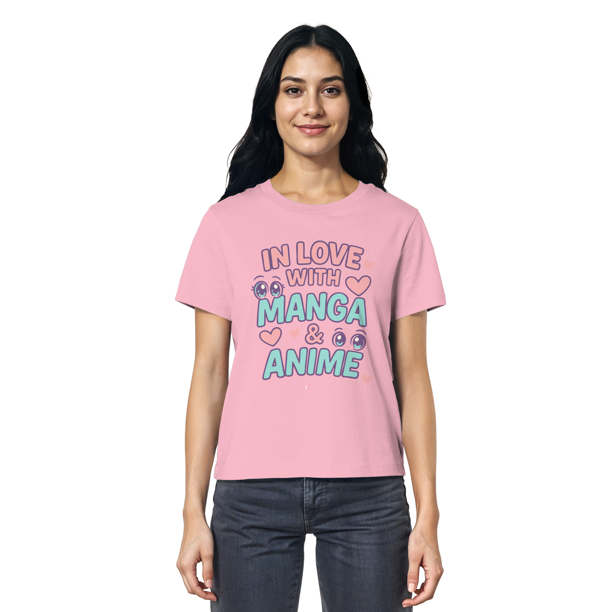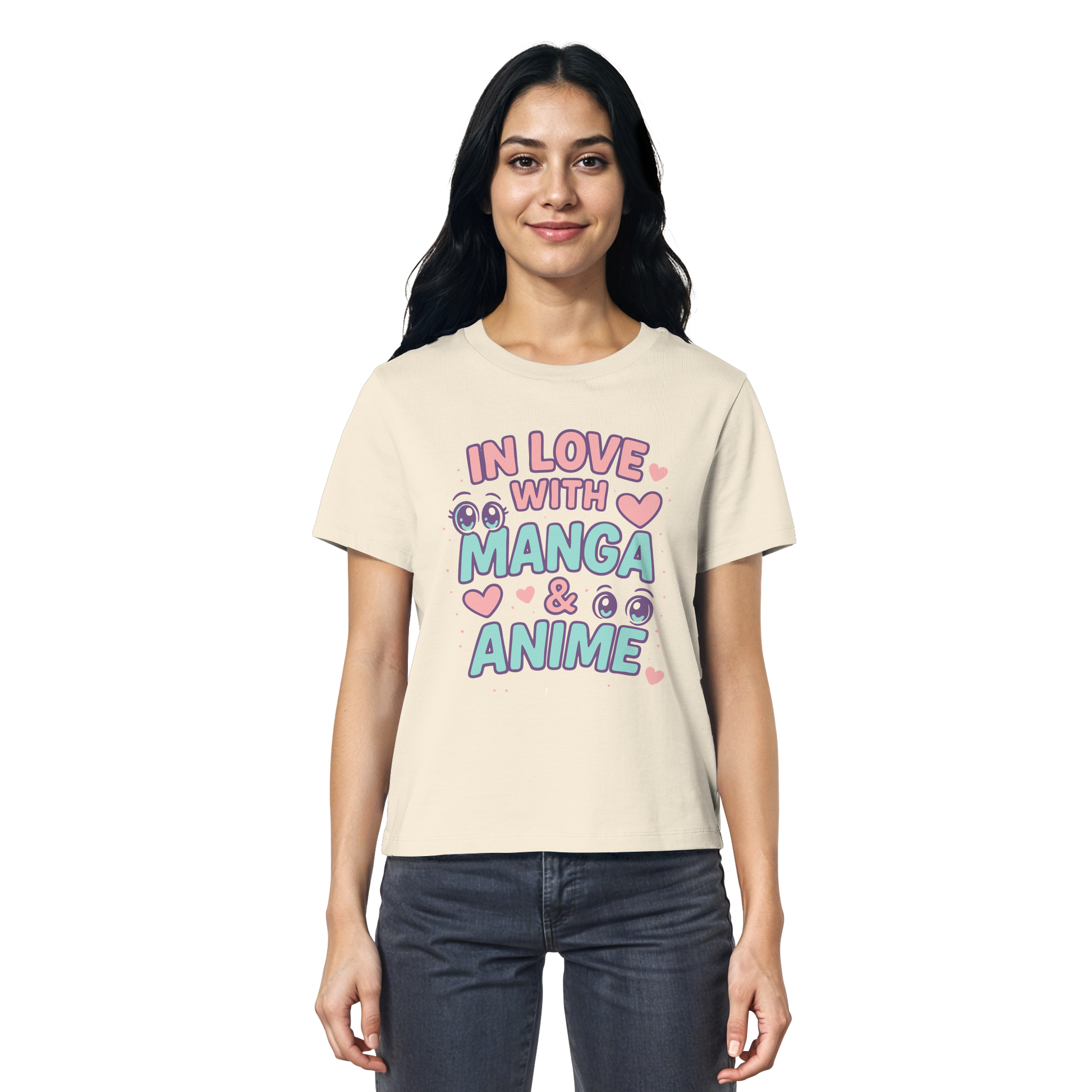 In Love with Manga & Kawaii Eyes Spruch - asiatische Popkultur - Ladies Organic Shirt