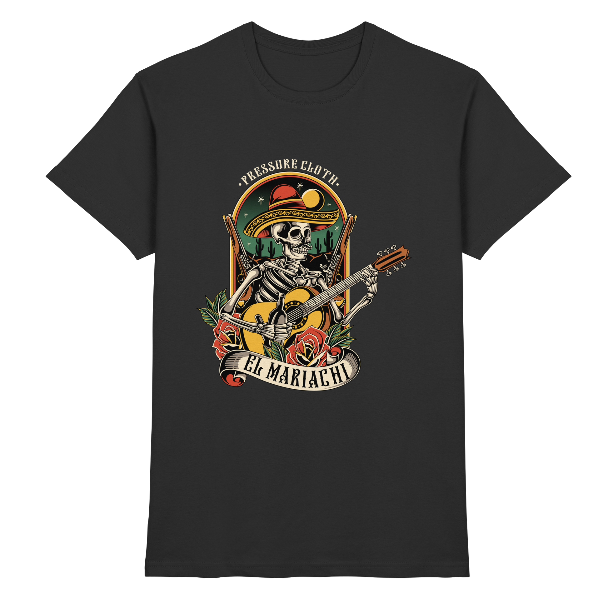 Ein Muss für Musikliebhaber und Gitarristen. Das Design von Pressure Clothing zeigt eine farbenfrohe Illustration des El Mariachi, dem einem legendären Gitarristen in der mexikanischen Kultur. Inspiriert vom ikonischen "Dia de Muertos"-Festival, fängt dieses Vintage-Design die Energie und den Geist der mexikanischen Feier ein.